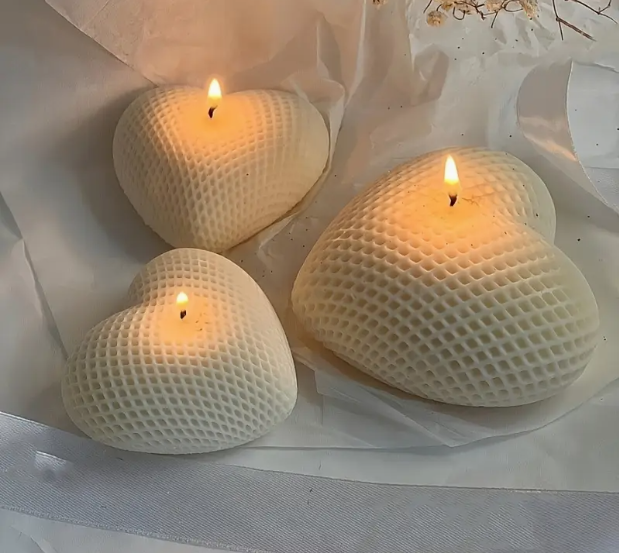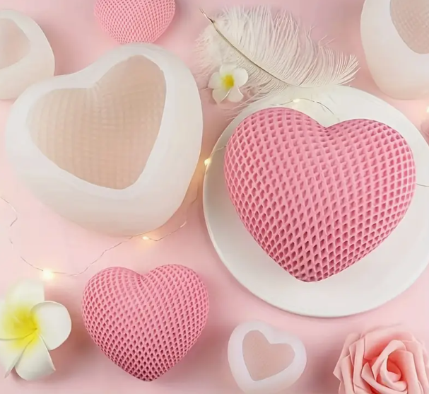 En Panchiscakes, te ofrecemos este hermoso Molde de silicona en forma de corazón tejido en 3D,   para Velas de Aromaterapia,  Jabones Hechos a Mano